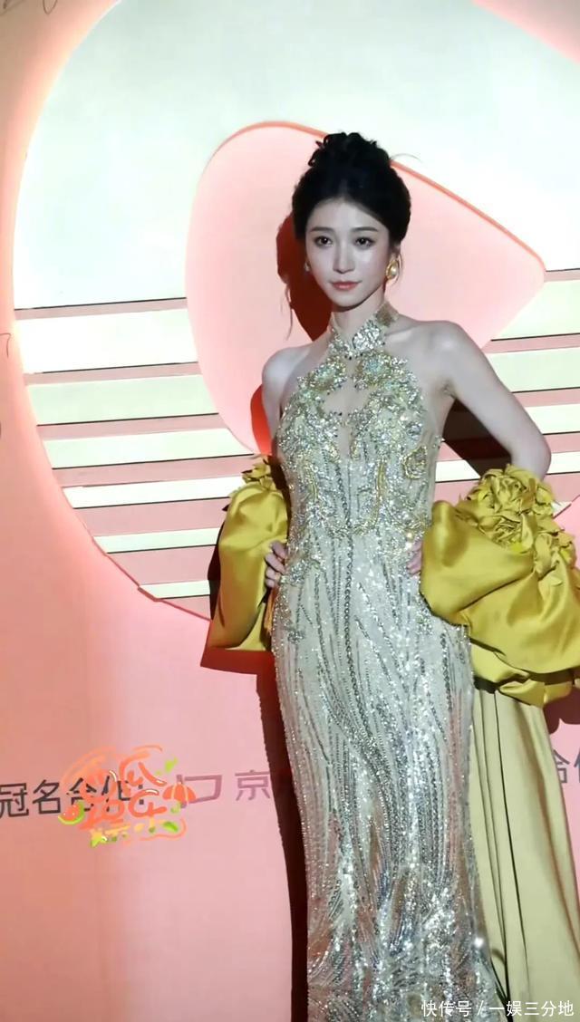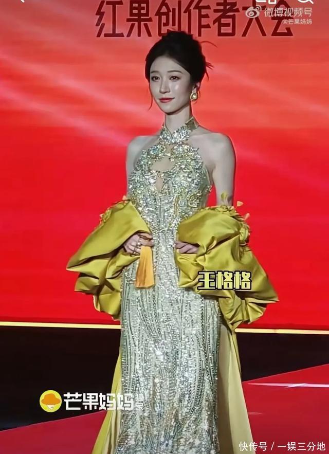 王格格身着鎏金色挂脖长裙,搭配同色系珠宝,盘发造型凸显优雅肩颈线,整体呈现“珠光宝气”的女王气场,被网友赞誉为“红毯定海神针”。