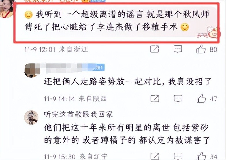 更荒诞的情节接二连三浮现:有人编造出李连杰与一名叫“秋风”的武僧交换器官的故事,并虚构后者遭遇不测的剧情细节。