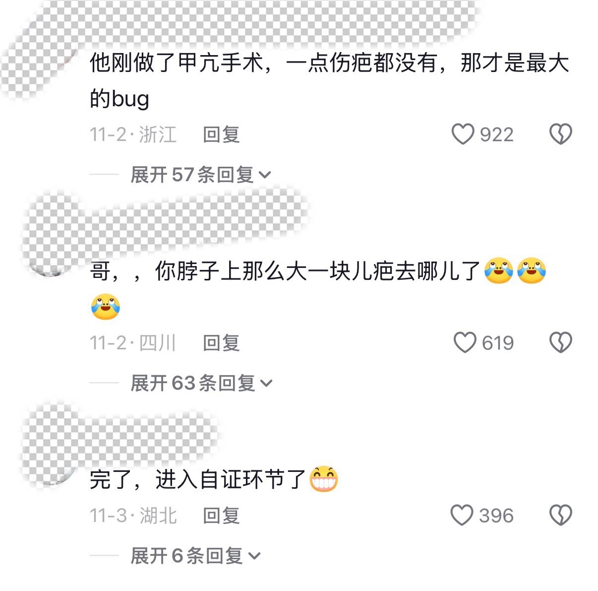 最关键的是,他特意面向镜头展示胸腹部区域,皮肤平整光滑,完全没有器官移植术后应有的长条形手术切口痕迹。